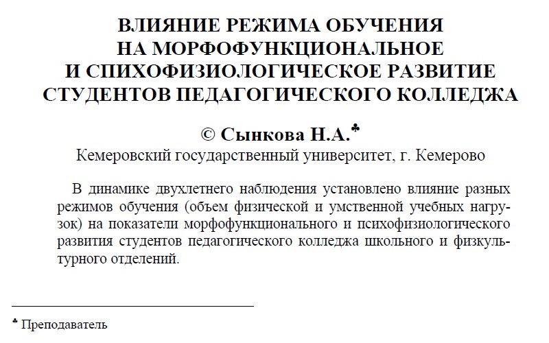 Влияние режима обучения на морфофункциональное и спихофизиологическое развитие студентов педагогического колледжа