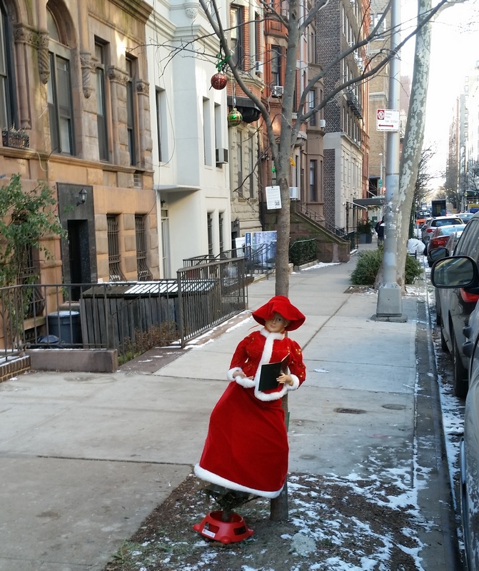 Это загадка. У меня было две гипотезы: либо это концептуальное искусство (типа: Здравствуй, ёлка, новый год!), либо утилитарная упаковка отслужившей ёлки для отправки в последний путь (выброшенных ёлок на улицах было очень много, несколько других видны на фотографии).